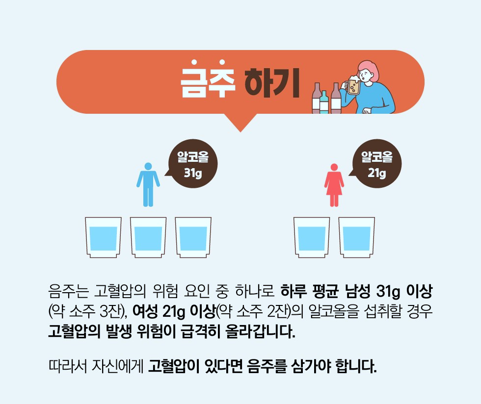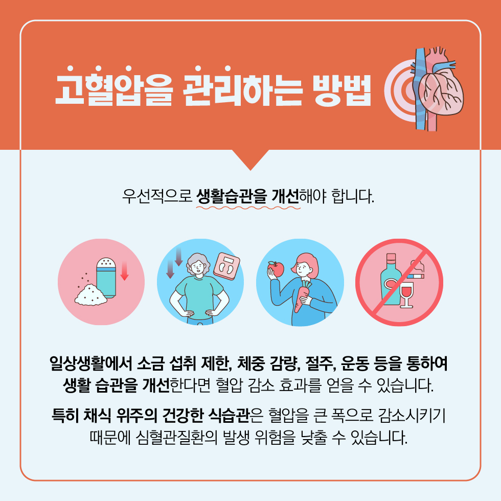 고혈압에 좋은 음식 대해 알아보았습니다. 일상 생활에서 실천할수 있는 방법은 건강한 체중을 유지하고 과음과 흡연을 하지 않으며 매일 30분 이상 유산소 운동을 하는것이 큰 도움이 됩니다.