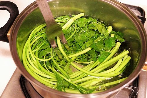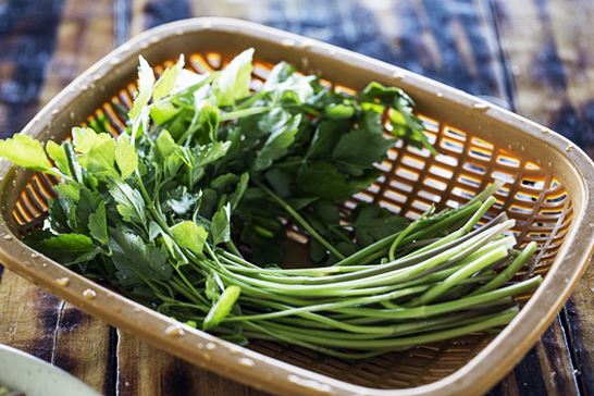 미나리는 초록색이 선명하고, 줄기가 너무 굵지 않고 길이가 고르게 일정한 것을 골라야 합니다.